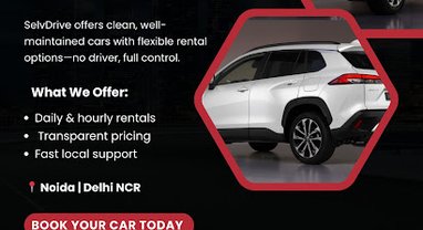 Selvdrive Rentals Noida offers reliable self-drive and chauffeur-driven car rental services across Noida for daily, monthly, corporate, and outstation travel. We provide a wide range of vehicles including hatchbacks, sedans, SUVs, and premium cars to suit personal, business, and long-term rental needs. Whether you need a self-drive car in Noida, a luxury vehicle for special occasions, or a comfortable car rental for corporate use, our fleet is well-maintained, clean, and ready for every journey. We serve major locations including Sector 62, Sector 63, Sector 18, and nearby areas with transparent pricing and flexible rental options. Book a car with confidence for local travel, airport transfers, or outstation trips.